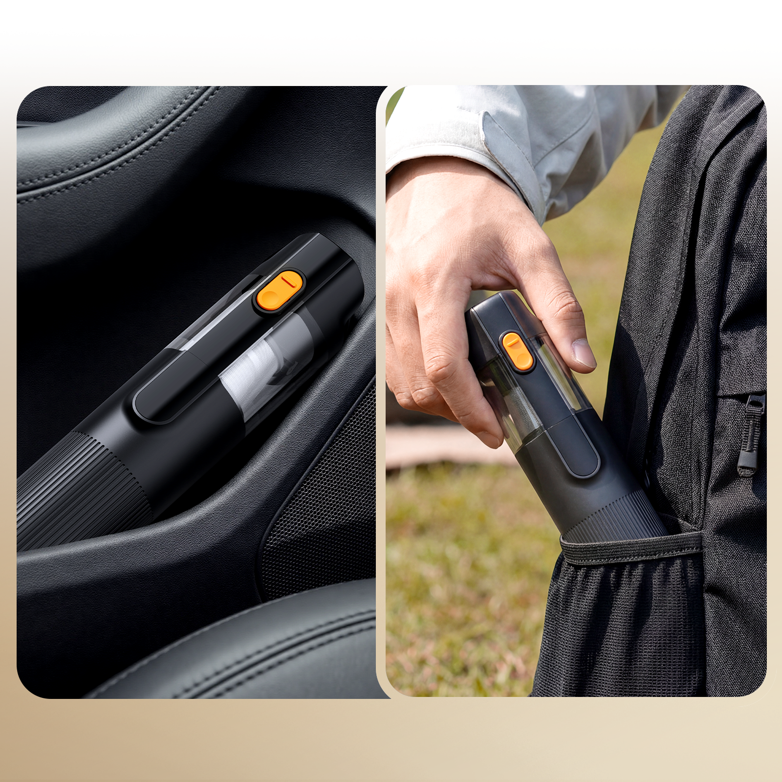 Ultra-compact design fits every car nook—gaps, armrest boxes, trunk corners. Takes no extra space, stays handy for on-demand cleaning anytime.
